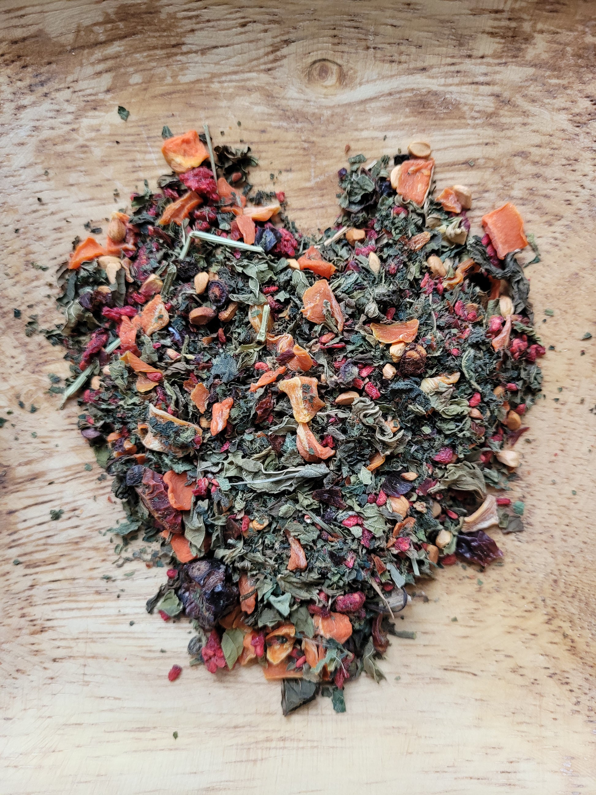 Ingredients: Dried Carrot, Dried Rosehip, Dried Black Currants, Dried Raspberries, Nettle Leaves, Spearmint